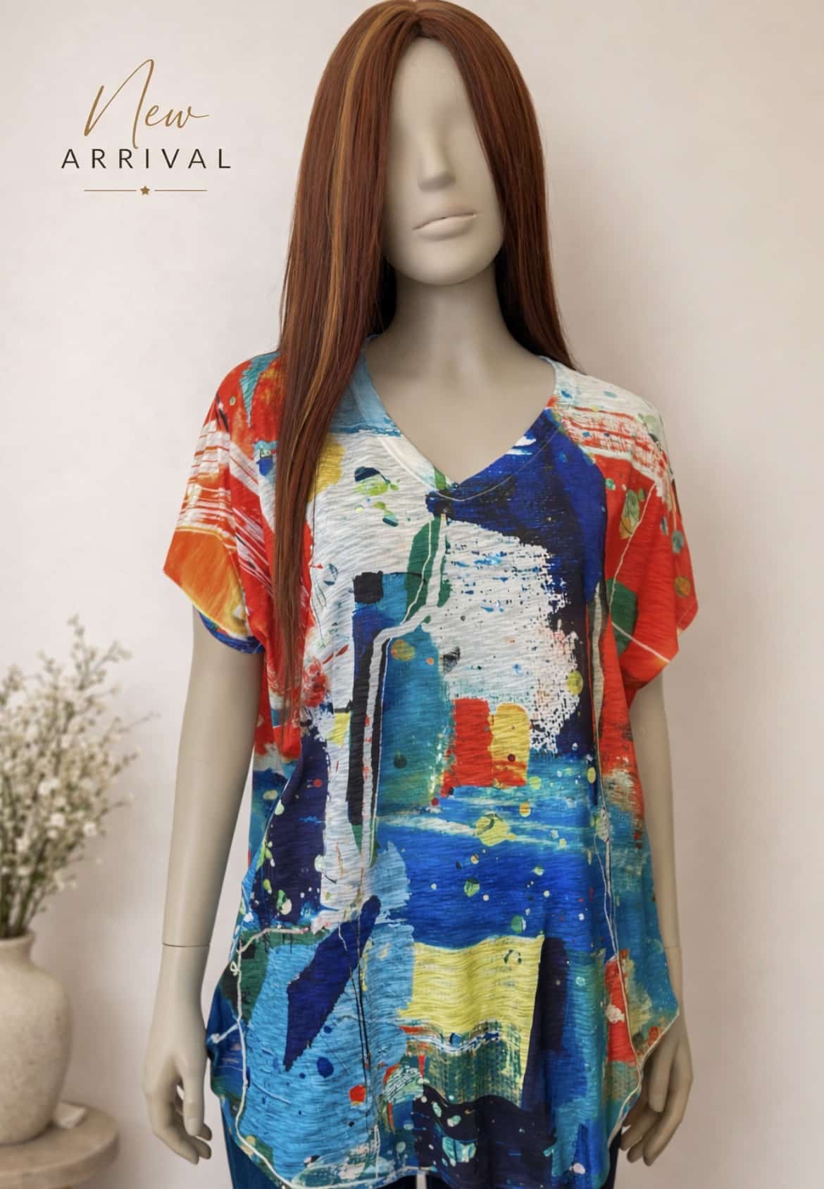 Make a statement in the Painted Canvas Top—where art meets fashion. This vibrant piece features bold brushstroke patterns in rich, eye-catching colors that instantly elevate any outfit. The flowy silhouette offers comfort without sacrificing style, making it perfect for dressing up with accessories or keeping it casual with your favorite denim.