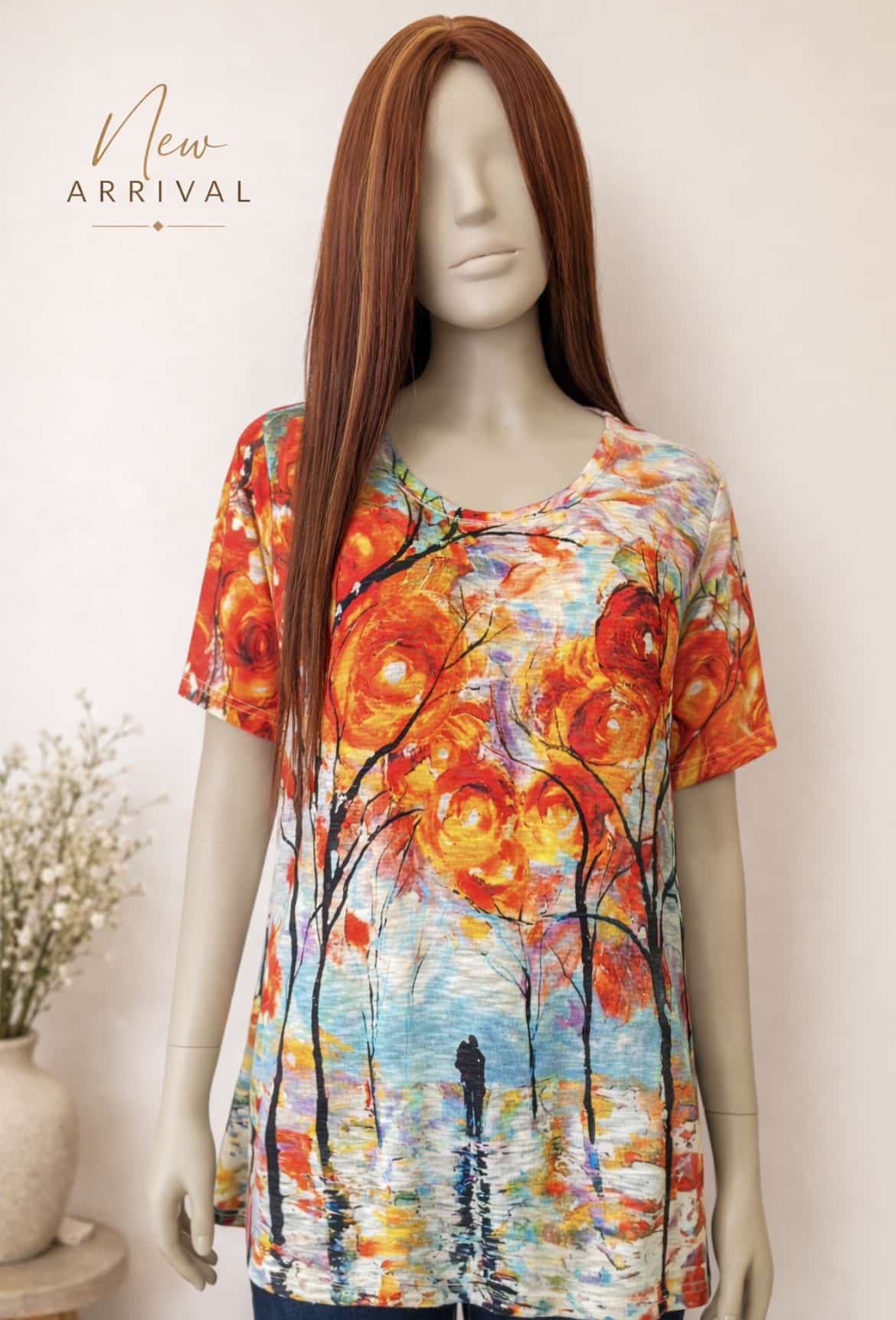 A wearable piece of art, the Sunset Stroll Artistic Tee captures the beauty of a glowing evening sky with painterly brushstrokes and warm tones. With its relaxed silhouette and soft fabric, this top is perfect for those who love unique, expressive style.